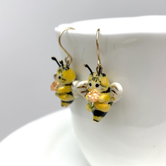 Bee Cat Dangle Earrings