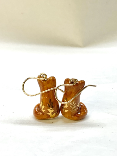 Golden Leaf Fox Dangle Earrings