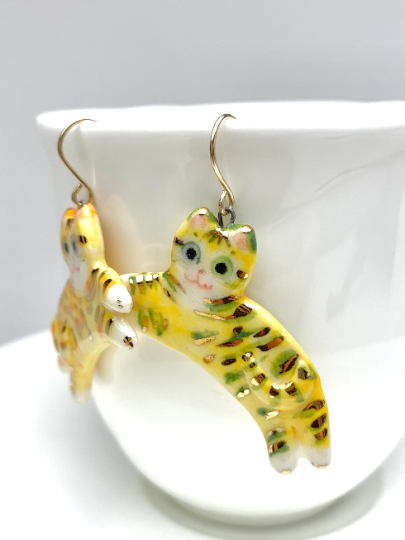 Whimsical Yellow Tabby Dangle Earrings