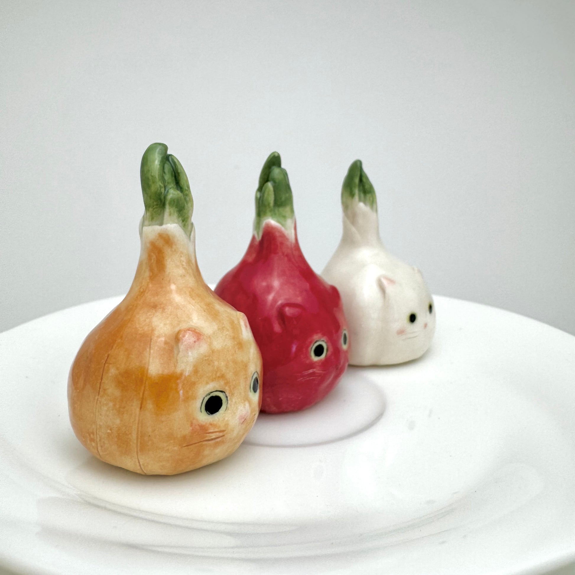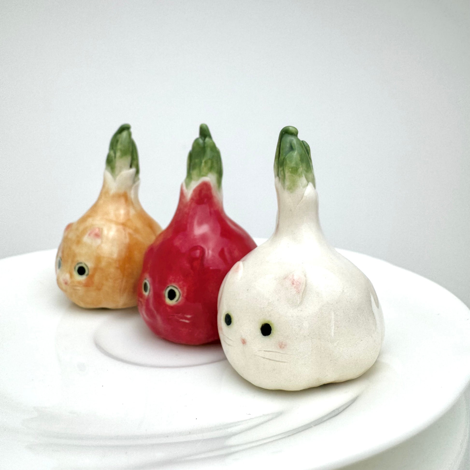 Available in three styles: Garlic Cat, Yellow Onion Cat, and Red Onion Cat